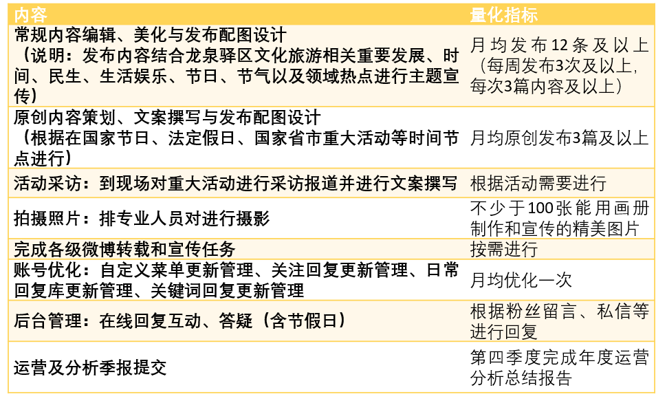 服務(wù)包含:常規(guī)內(nèi)容發(fā)布、 原創(chuàng)內(nèi)容發(fā)布、 活動(dòng)采訪、 拍攝照片、 賬號(hào)優(yōu)化、 在線回復(fù)互動(dòng)、答疑