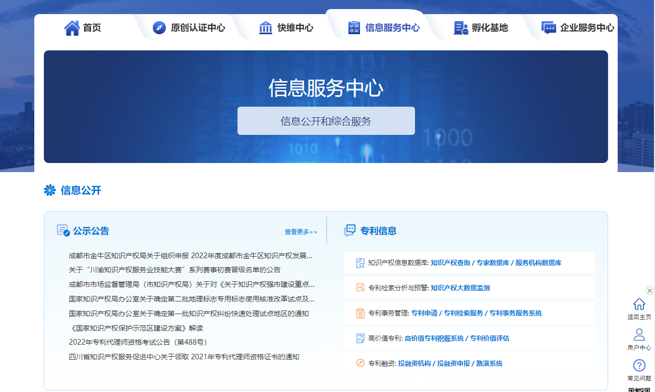 實(shí)現(xiàn)信息公開(kāi)和綜合服務(wù),包括公示公告、專利信息、知產(chǎn)創(chuàng)造、運(yùn)用、保護(hù)、管理