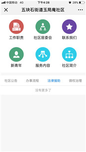 對社區(qū)的各項辦事流程,以及社區(qū)能提供的法律援助,服務內(nèi)容,維權整治等政策信息進行公開公布。