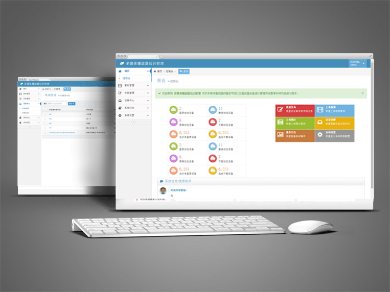 管理后臺(tái)提供節(jié)目發(fā)布、素材管理、播放器管理、操作日志記錄等等功能。同時(shí)支持對(duì)播放器遠(yuǎn)程管控,遠(yuǎn)程發(fā)送節(jié)目等等功能。
